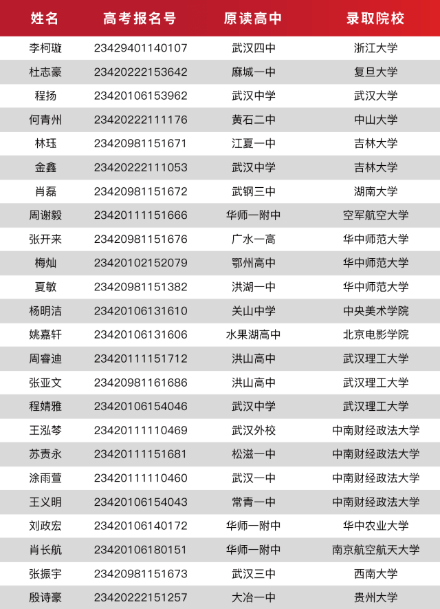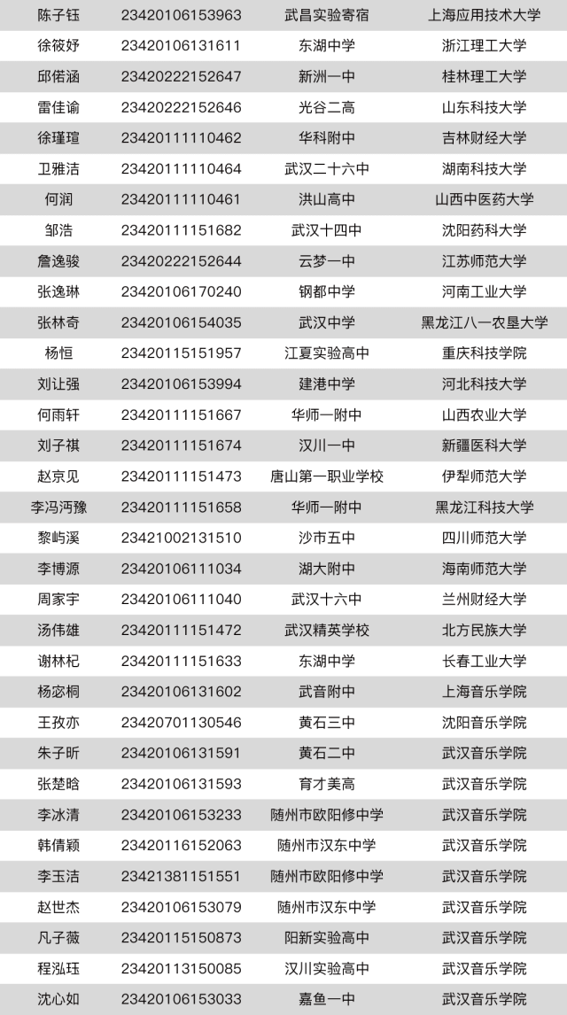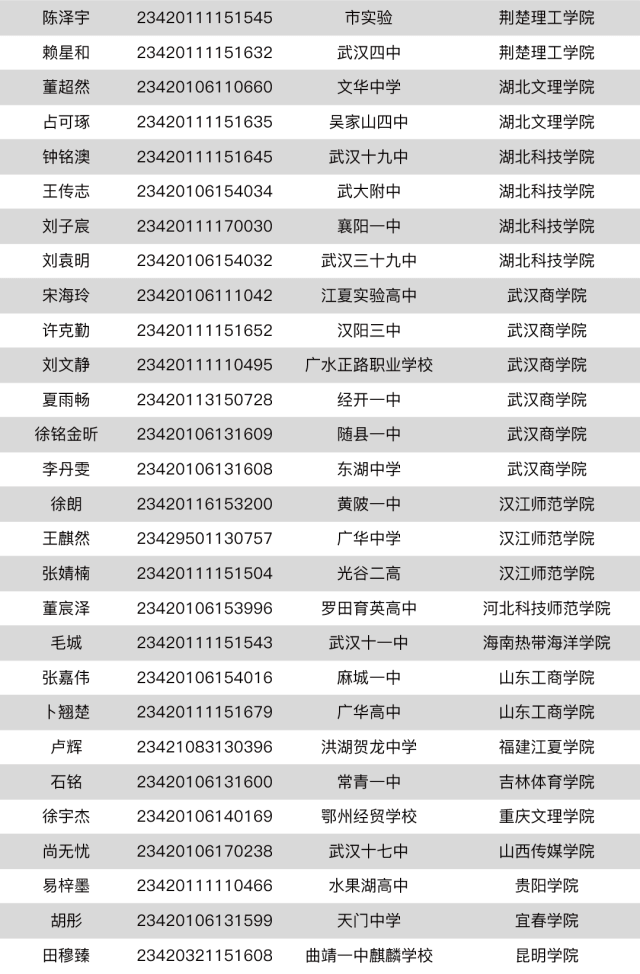 (不愿上榜的和民辦本科錄取的學生沒有收錄)
